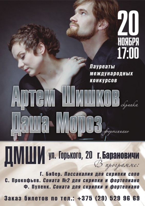 Лауреат конкурса королевы Елизаветы, первый белорус, сыгравший на скрипке Страдивари, человек, имя которого вписано в "Золотую книгу" фонда "Новые имена Планеты"" выступит в Барановичах!!! Билет - 8 руб.
