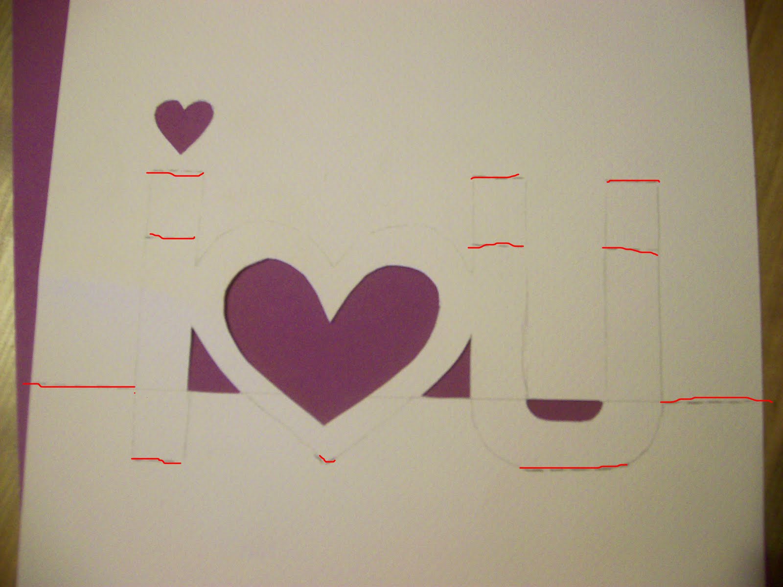 Затем, нужно прорезать резаком все сплошные линии,я бы советовала внизу у сердечка маленький уголок не вырезать,а оставить прикрепленным к бумаге: